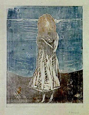 | Young woman on the shore, 1896. Acuatinta sobre zinc. 288 x 219 cm. Museo de Munch. Oslo. |